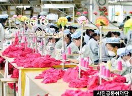 생산라인에서 일하고 있는 북한 개성공단 근로자들.