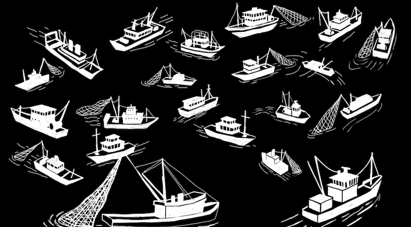 해산물 소비량은 지난 수십년간 꾸준히 증가했습니다. 유엔식량기구(Food and Agriculture Organization of the United Nations)에 따르면 일인당 연간 해산물 소비량은 지난 50년 동안 거의 두 배 가까이 증가했고, 같은 시기 세계 인구 또한 두 배가 넘게 늘었습니다. 늘어난 수요에 따라 업계는 바빠졌고 바다 위 선박도 꾸준히 증가해, 지난 2012년도에는 총 4,720여만 척의 선박이 바다 위에서 조업활동을 벌였다고 합니다. 수산업 기업들의 덩치가 점점 커지면서, 매년 더 많은, 더 거대한, 그리고 최신식 기술로 무장한 어선들이 더 깊고 먼 바다에서 물고기를 끌어 올리고 있는 것이죠.