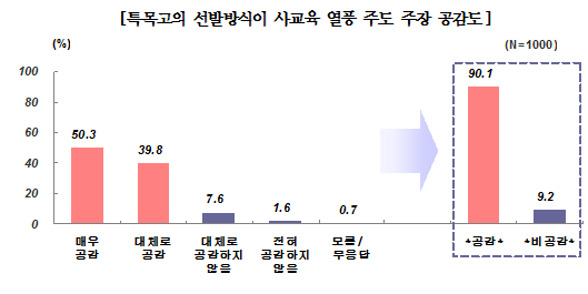 또 어처구니가 없었던 것은 교총에서 반대하고 나선 점이다. 교총 회장이 TV토론에서 외고개혁에 반대하는 쪽 패널로 나왔다. 교총은 일반 교사들이 주축인데 그들을 대표하는 교총회장이 반대한다는 것이 이해되지 않았다. 조·중·동은 교총회장 말을 인용해 마치 전 교육계가 반대하는 것처럼 1면에 기사를 올리곤 했다. 당시 교총회장이 서울시 교육감에 출마한다고 준비하고 있을 때였다. 나는 이주호에게 얘기해서 교사들 자료를 달라고 했다. 교사들을 상대로 1000만원 가량의 비용을 들여서 여론조사를 했더니, 교사들은 외고개혁에 대해서 90% 이상이 찬성한다는 결과가 나왔다. 일반인보다도 찬성비율이 더 높았다.