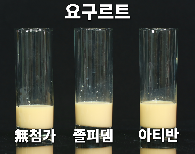 셋째, 요구르트다. 요구르트는 달달하기 때문에, 약을 넣어도 맛을 감춰줘 잘 알지 못할 것이라고 예상했다. 그러나 예상과 달리, 달달한 음료여서 오히려 쓴 맛이 잘 느껴졌다. 졸피뎀이 아티반보다 쓴 맛이 더 강하게 느껴졌다. 만약 달달한 음료인데도 쓴 맛이 느껴진다면 약물이 들어있는지 의심해볼 수 있다. 그러나 요구르트의 경우 색깔론 구별하기 힘들었다. 원래 요구르트 색깔로 전혀 차이가 나지 않앗다.