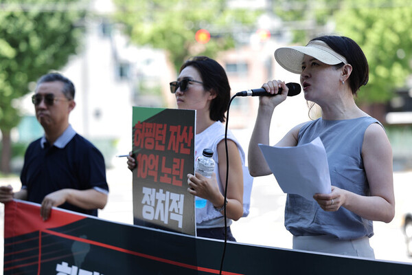 7월2일 허프 기자 6명 전원(신규 입사자는 7월10일 노조 가입)은 노조를 새롭게 구성했다. 허프 노조는 “매각에 따라 근로조건에 큰 영향을 미친다”며 교섭을 요구했지만 한겨레신문사와 유 사장은 교섭을 거부했다. 허프 단협 제24조는 ‘사업의 전부 또는 일부를 타 기관에 양도하고자 할 때 조합에 통보하고 충분히 협의해야 한다’고 규정한다. 하지만 한겨레신문사는 “해당 조항은 허프 법인이 직접 분할 등의 행위를 수행하는 경우에만 적용될 뿐”이라는 입장이다. 허프 노조는 2025년 7월 말부터 매주 화·목요일 공덕동 한겨레신문사 사옥 앞에서 “매각 철회”를 요구하며 기자회견을 하고 있다.